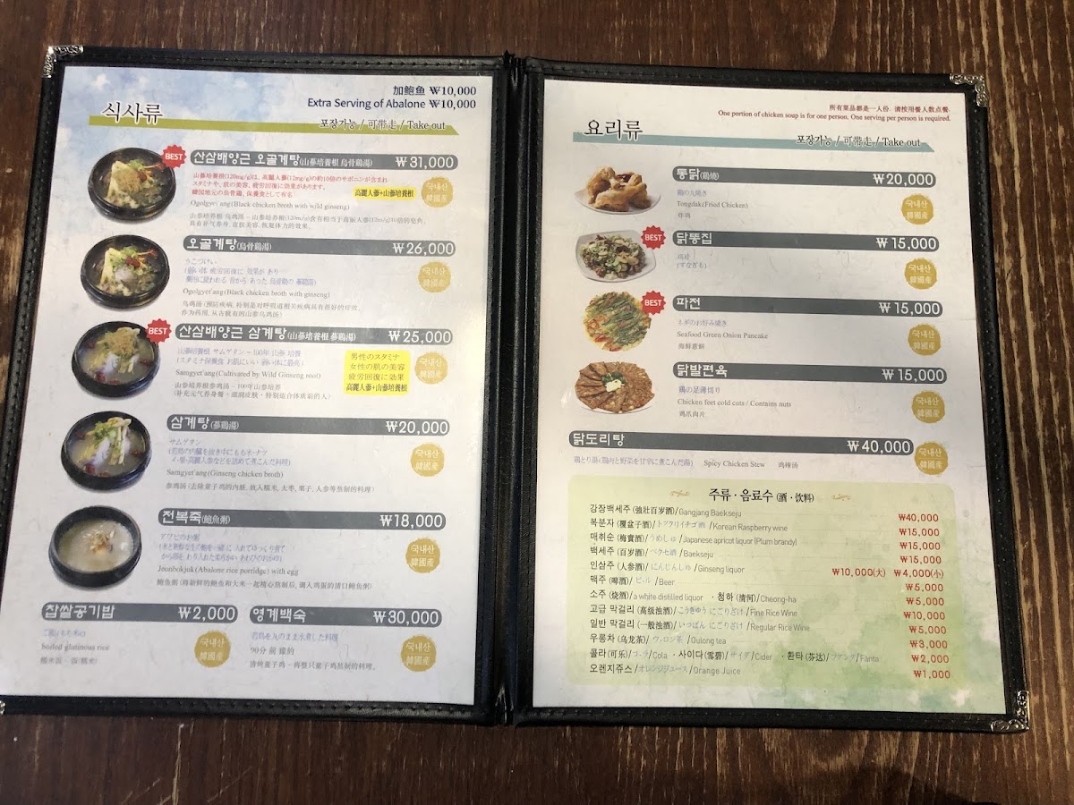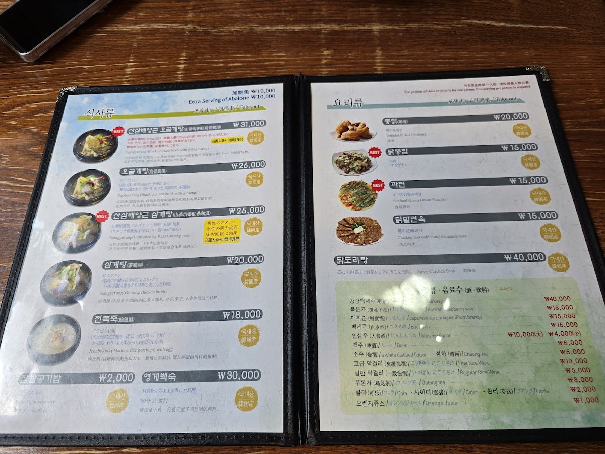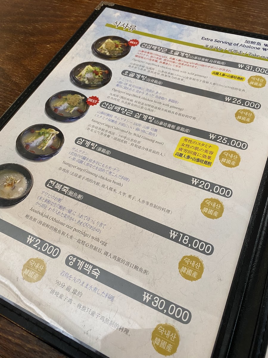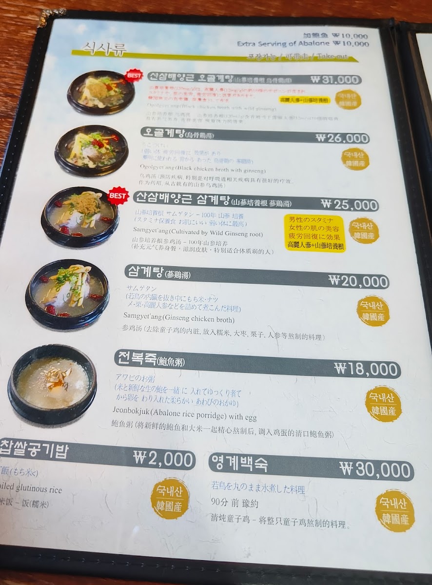 Introducing the Menu at Baekje Samgyetang