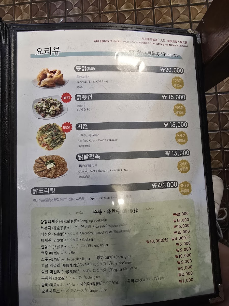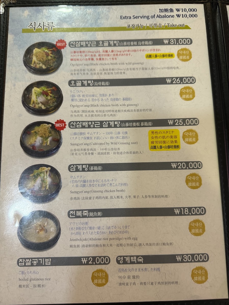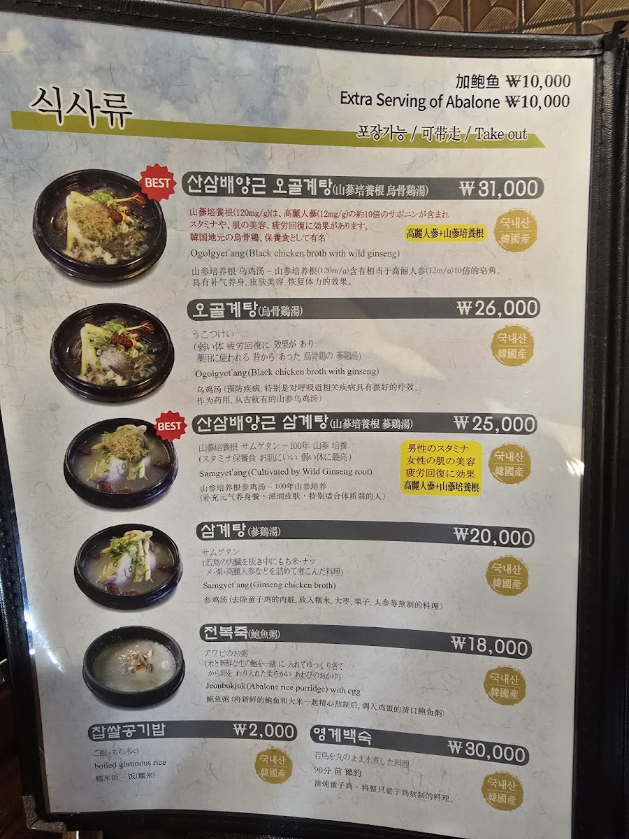 Introducing the Menu at Baekje Samgyetang